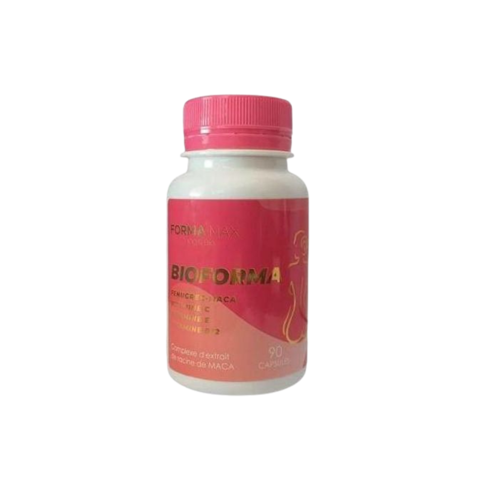 Bio-Forma 90 Capsules (500 mg) est un complément naturel qui combine le fenugrec et le maca, enrichi en vitamines C, E et B12. Ce produit est conçu pour soutenir le développement musculaire des fesses et des hanches, raffermir la peau et réduire les lignes sombres et la cellulite. Caractéristiques principales : Dosage : 2 à 3 capsules par jour Quantité : 90 capsules par contenant Ingrédients : Fenugrec et maca 100% purs et naturels Précautions : Non recommandé pour les femmes enceintes ou les personnes allergiques au fenugrec et au maca. Garder hors de portée des enfants et ne pas dépasser la dose recommandée.