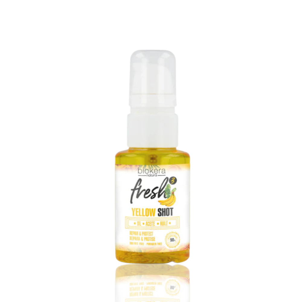 La Yellow Shot Oil de la gamme Biokera Fresh (Salerm) est une huile de soin capillaire conçue pour réparer, protéger et revitaliser les cheveux fragilisés par les traitements chimiques, le soleil, les lavages fréquents ou la chaleur.