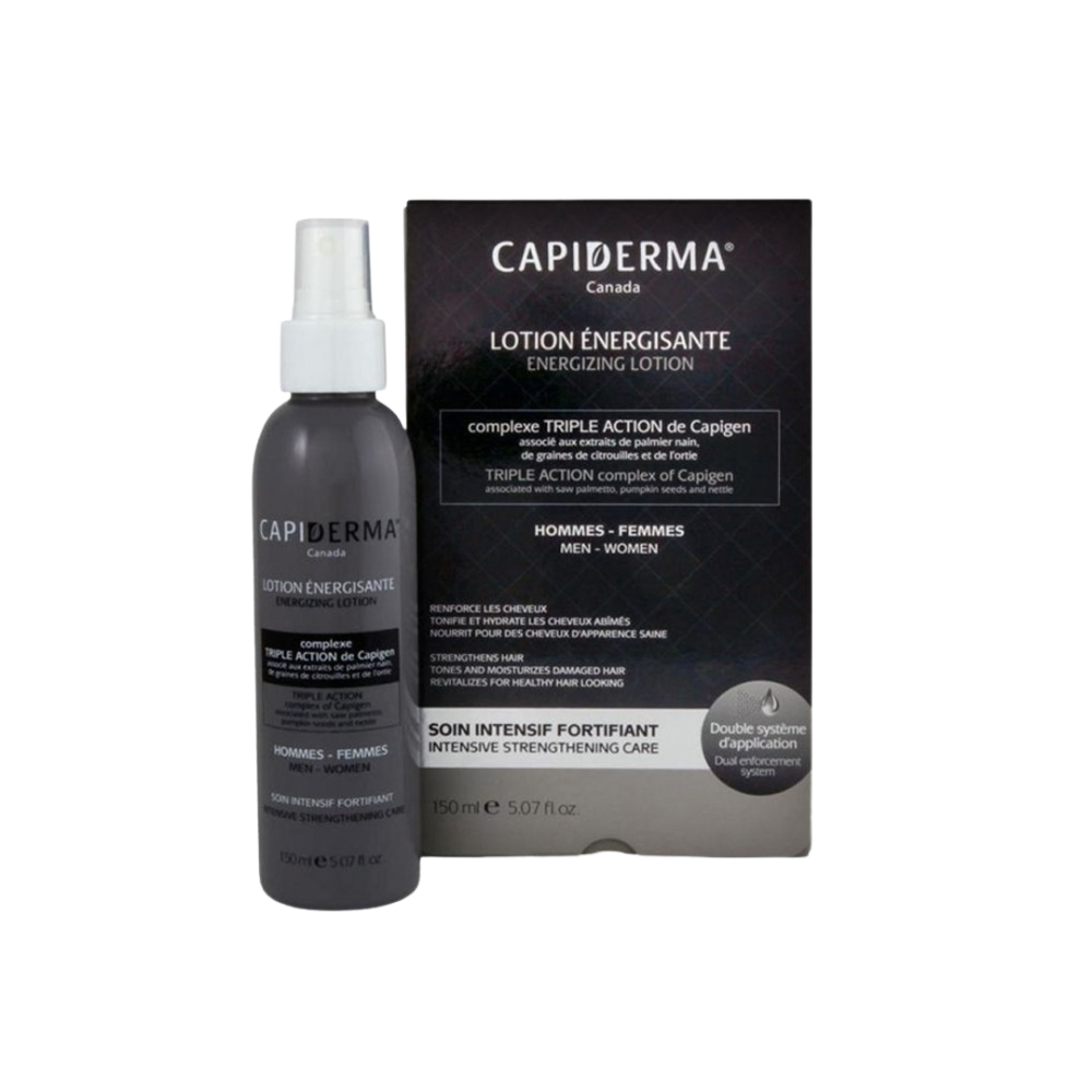 La Lotion Énergisante Capiderma est un soin intensif destiné à ceux qui constatent une perte de cheveux ou ressentent une fragilité capillaire. Grâce à une formule ciblée, cette lotion vise à :