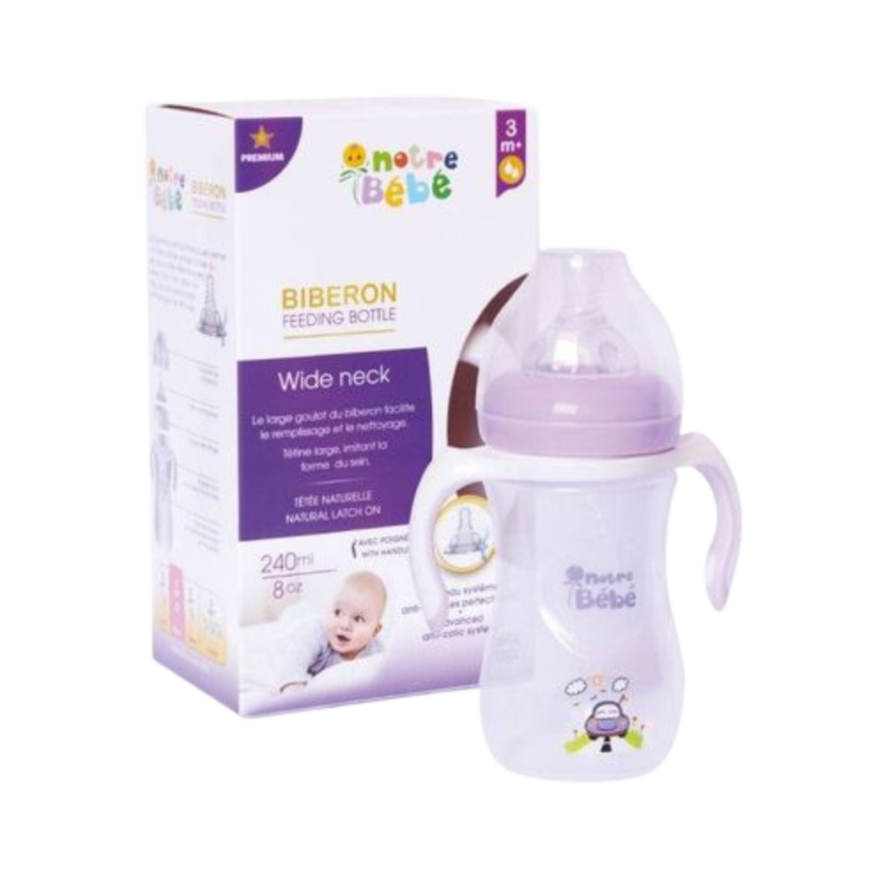 Le Biberon 240 ml de Notre Bébé est conçu pour offrir confort, praticité et sécurité dès 3 mois :